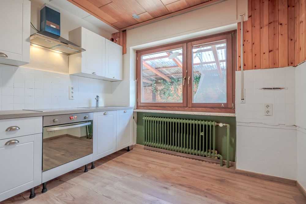 Über eine Treppe von der Einfahrt gelangt man in das eigentliche Wohngeschoss. Hier befinden sich eine Küche mit moderner Einbauküche, ein Badezimmer (mit Fenster, Dusche, WC und Waschtisch), ein Wintergarten sowie drei weitere Zimmer, die flexibel als Schlafzimmer, Arbeitszimmer oder Wohnzimmer genutzt werden können.