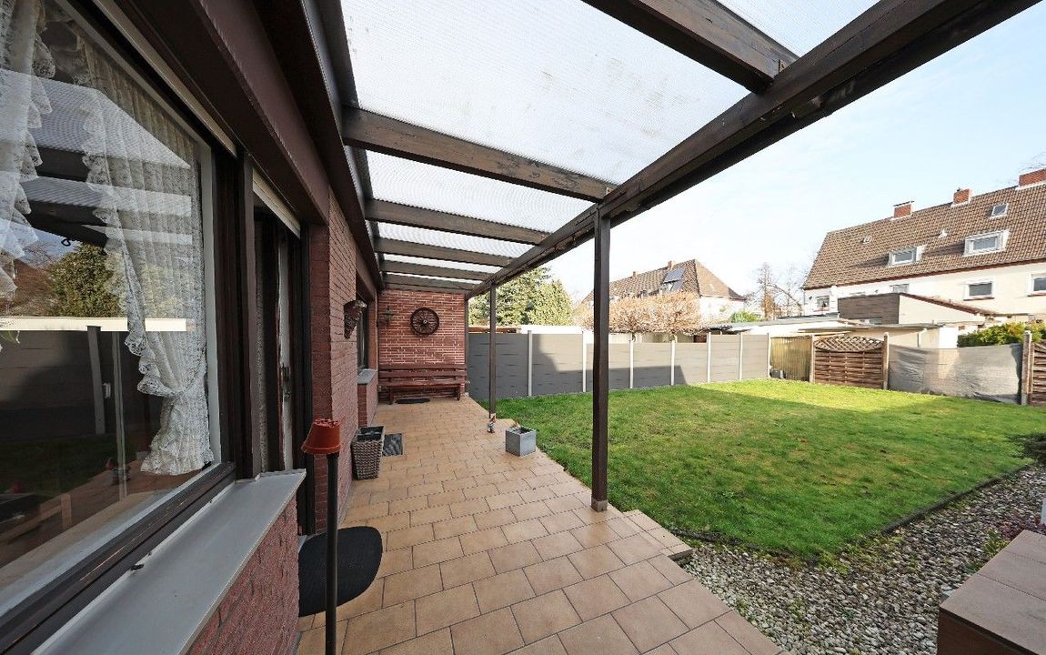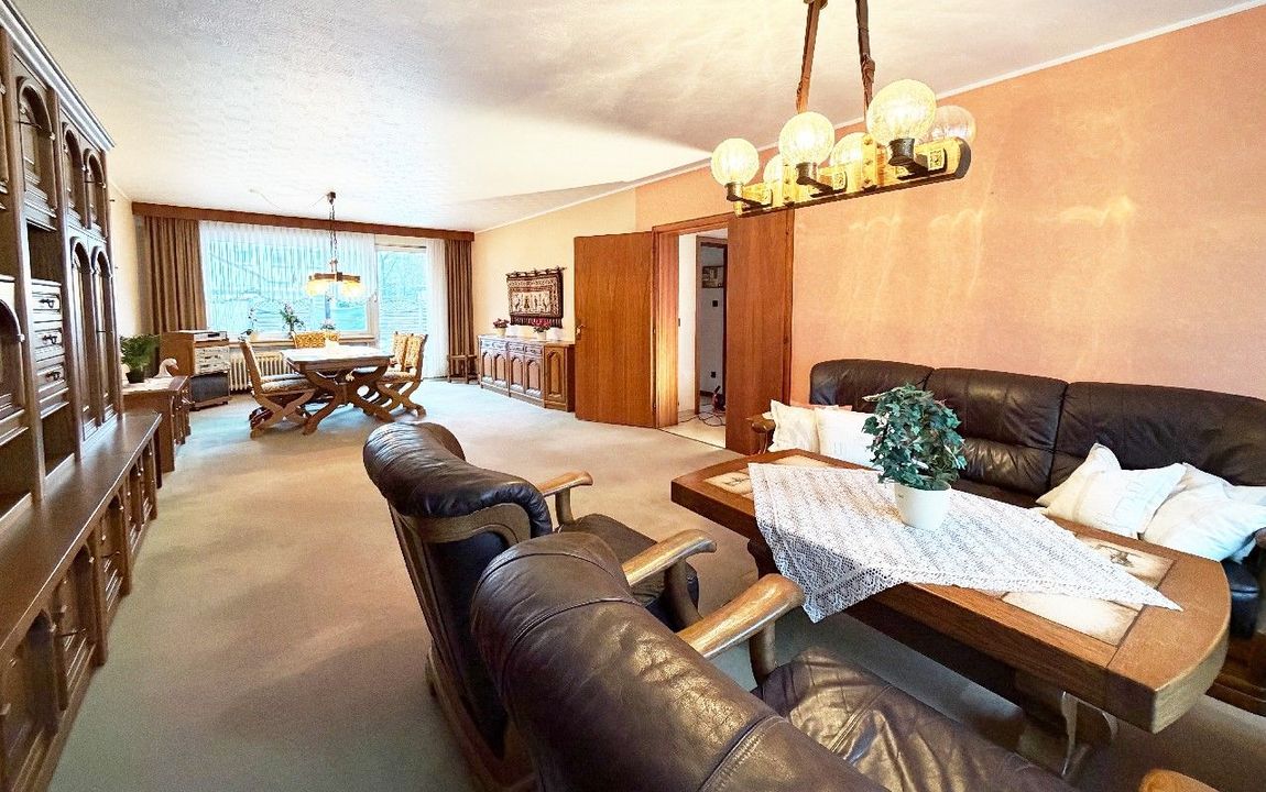 Diese Doppelhaushälfte aus dem Jahr 1970 bietet eine solide Grundsubstanz, eine großzügige Raumaufteilung und vielfältige Nutzungsmöglichkeiten. Empfangen werden Sie Ihre Gäste künftig in einem großzügigen Entrée. Kochliebhabern steht eine ca. 14 m² große Küche zur Verfügung, die über einen Zugang auf die überdachte Terrasse verfügt. Highlight dieser Immobilie ist sicherlich das ca. 42 m² große Wohn- / Esszimmer, welches sich über die gesamte Haustiefe erstreckt und ebenfalls über einen Terrassen- und Gartenzugang verfügt.