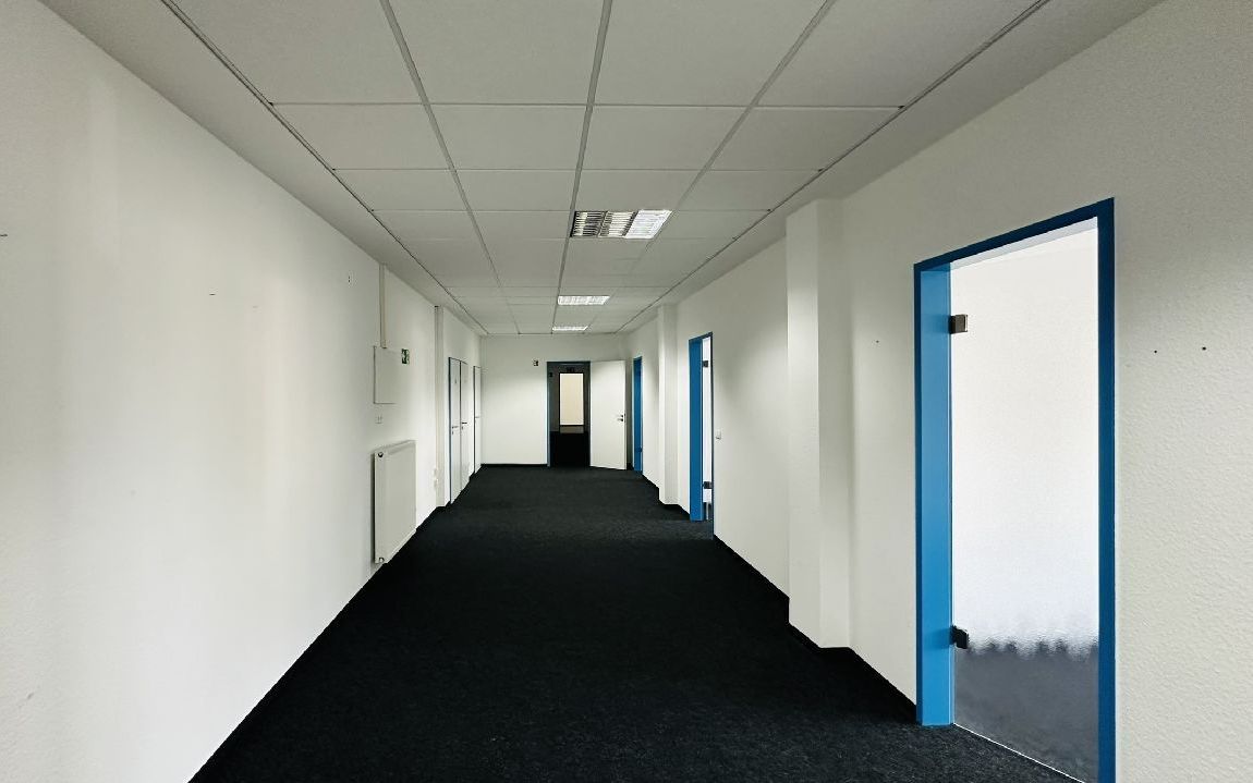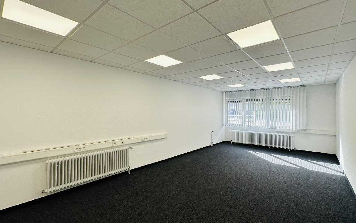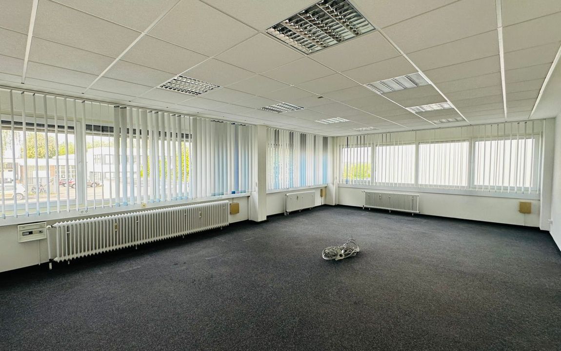 Nadelfilzteppich, teilweise Fliesen, überwiegend elektrische Außenjalousien, innen Lamellen, Kabelkanäle, DV-Verkabelung, Echtglastüren zu den Einzelbüros, Alufenster mit Isolierverglasung, Notausgang im EG, Klimasplittgeräte im OG, klimatisierter Serverraum mit Tageslicht im OG, Gaszentralheizung, Gegensprechanlage, Rauchabzugsanlage, Edelstahl Briefkästen.