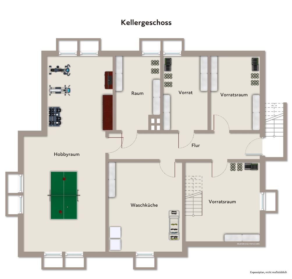 Keller: Das Haus ist vollständig unterkellert und bietet reichlich Stauraum sowie Platz für Hobbys oder eine Werkstatt.