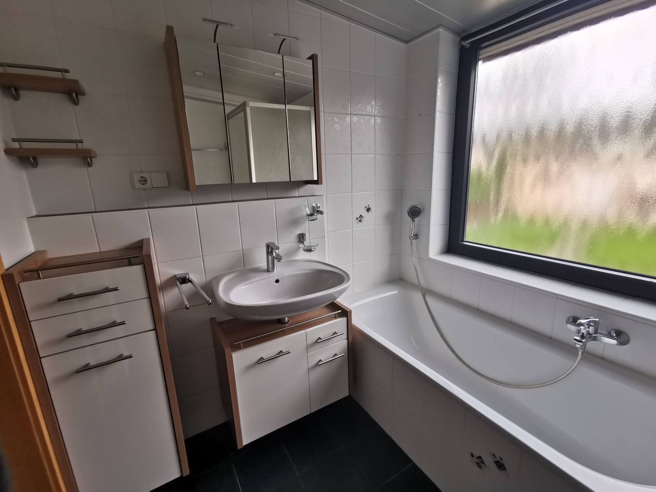 Die Ausstattung weist insgesamt einen renovierungsbedürftigen Zustand auf. Positiv zu erwähnen ist, dass die Gas-Etagenheizungen in den letzten Jahren modernisiert wurden. Das Badezimmer stammt aus den 2000er Jahren, die doppelt verglasten Kunststofffenster aus den 1980er Jahren. Die Bodenbeläge bestehen überwiegend aus einfachem Laminat oder Teppich.