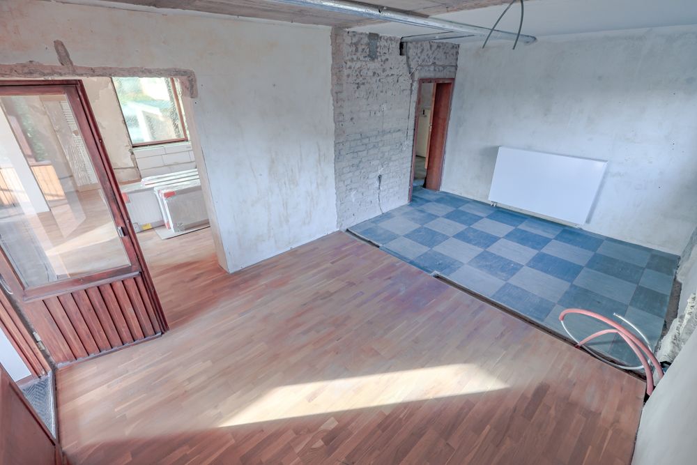 Im Obergeschoss befinden sich weitere flexibel nutzbare Zimmer. Der aktuelle Zustand ermöglicht es Käufern, die Räume nach eigenen Vorstellungen fertigzustellen und weiterzuentwickeln.