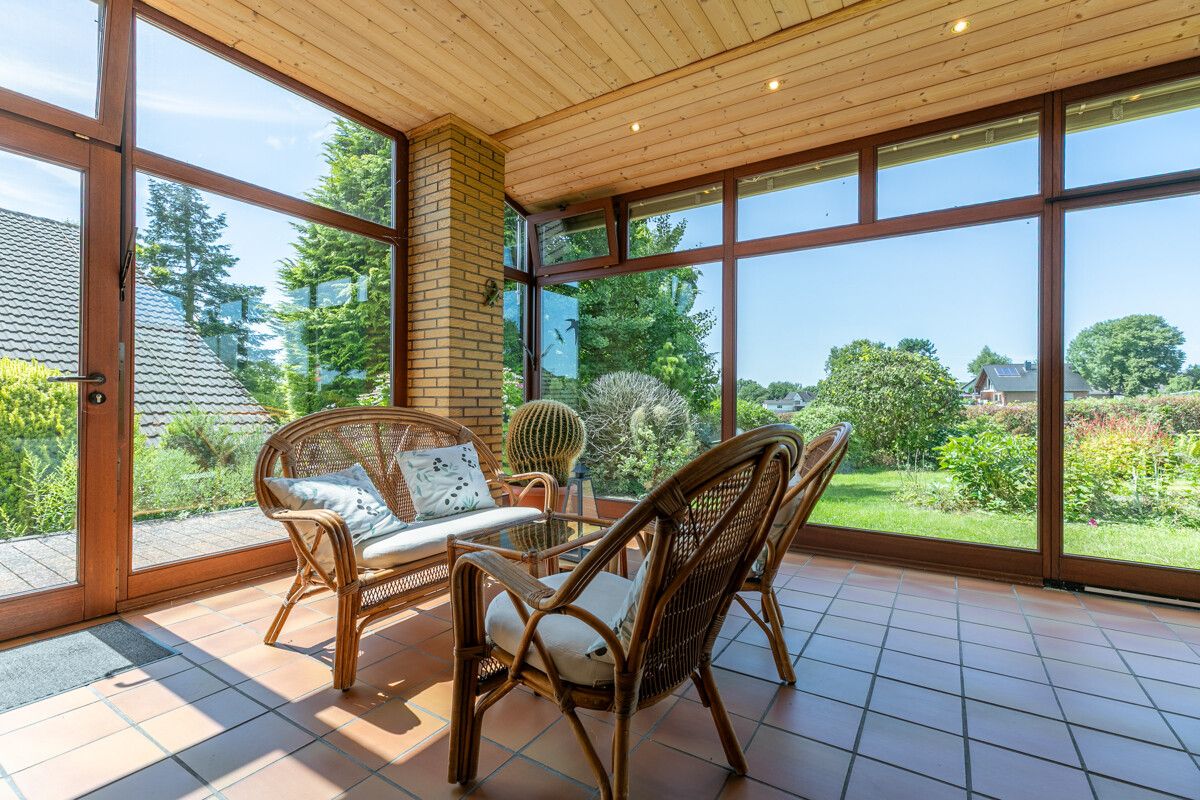 Dieses Haus bietet Ihnen auf zwei Etagen ein Maximum an Wohnkomfort. Hauptverantwortlich zeigt sich dafür unter anderem der großzügige Wohn-/Essbereich, der mit viel Platz für Ihre eigenen Wohnideen auf sich aufmerksam macht. Ein gemütlicher Kamin ist nicht nur optisch ein Highlight, sondern trägt auch zu gemütlicher Atmosphäre bei. Der wunderschöne Wintergarten lässt Sie hautnah am Wechsel der Jahreszeiten teilhaben und verspricht zu jeder Zeit ein gemütliches Plätzchen.