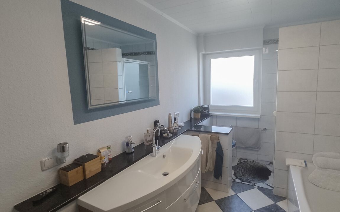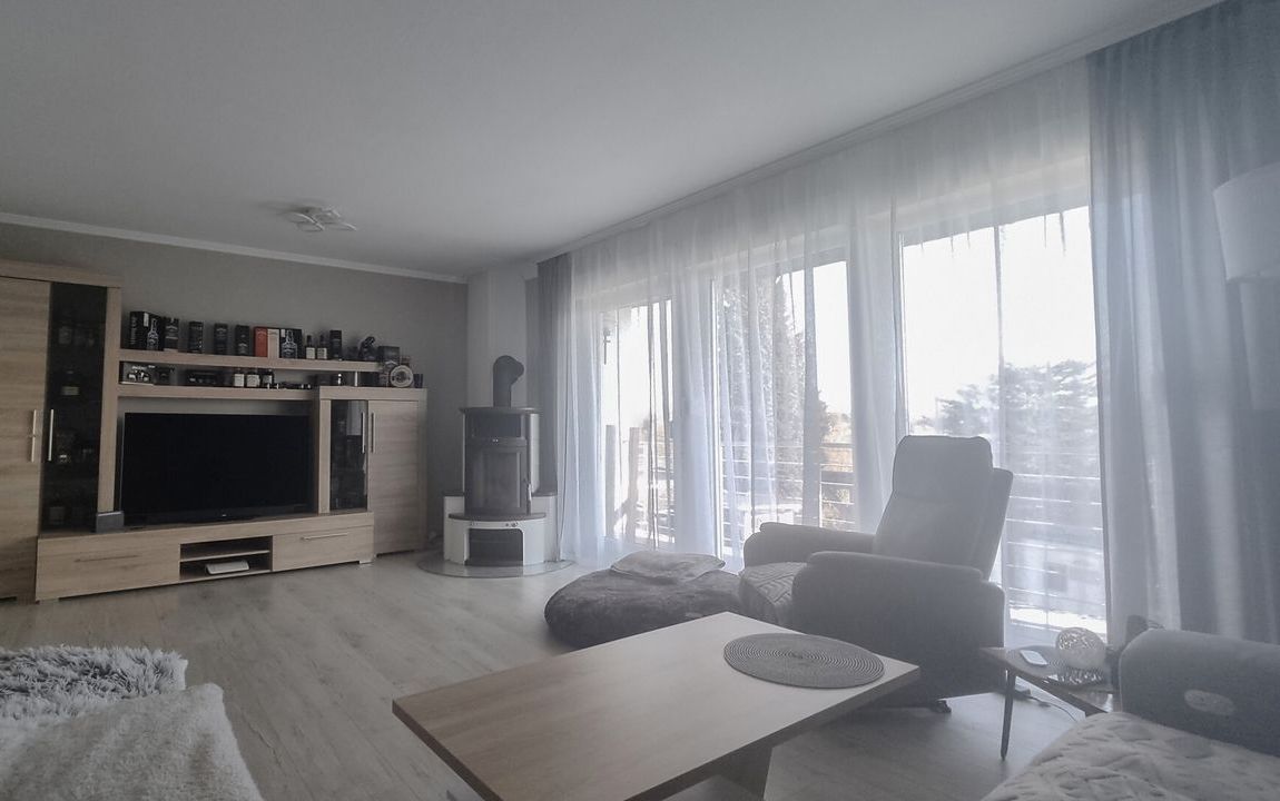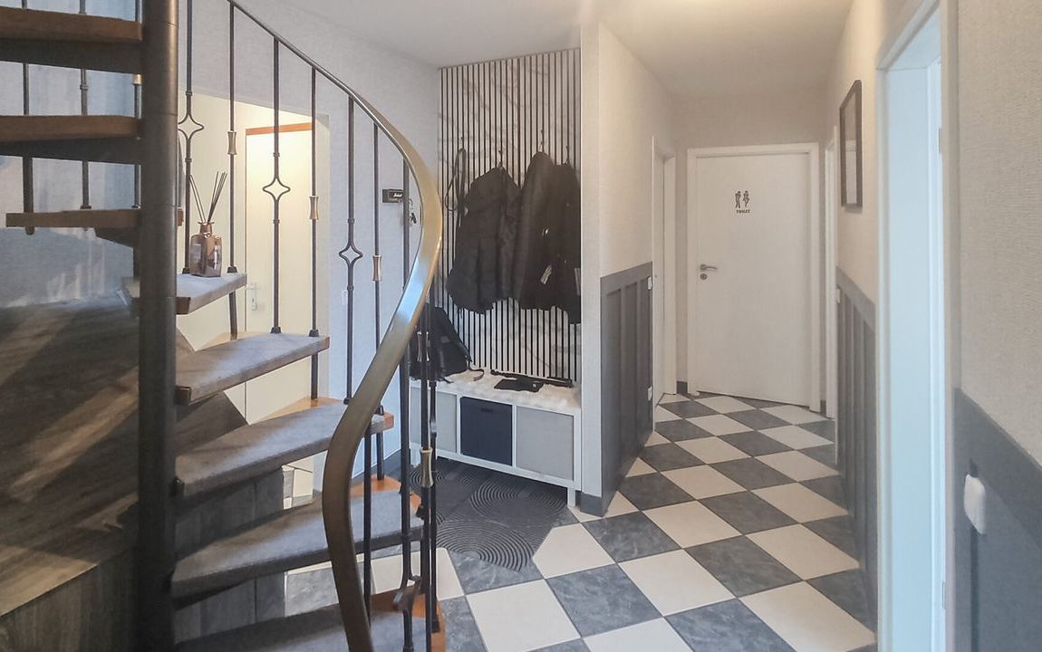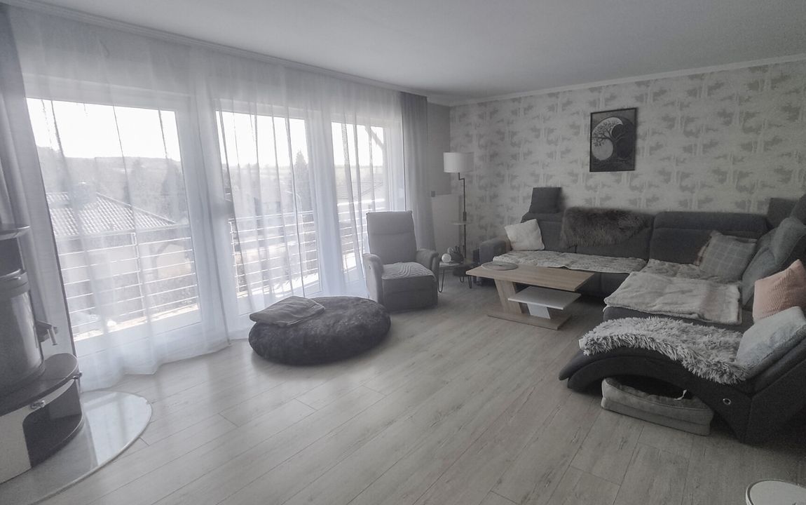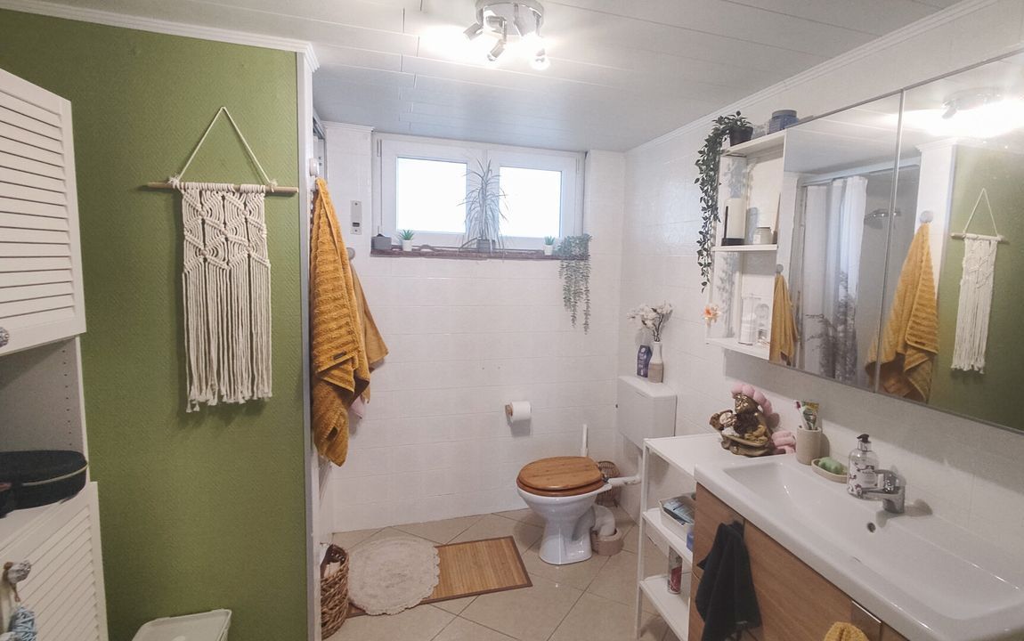 Die durchdachte Raumaufteilung überzeugt: Im Erdgeschoss erwartet Sie die Hauptwohnung mit hellem Wohnzimmer, Essbereich, Schlafzimmer, Küche, Bad und Hauswirtschaftsraum. Ein großzügiger Balkon mit schönem Ausblick sorgt für entspannte Stunden.