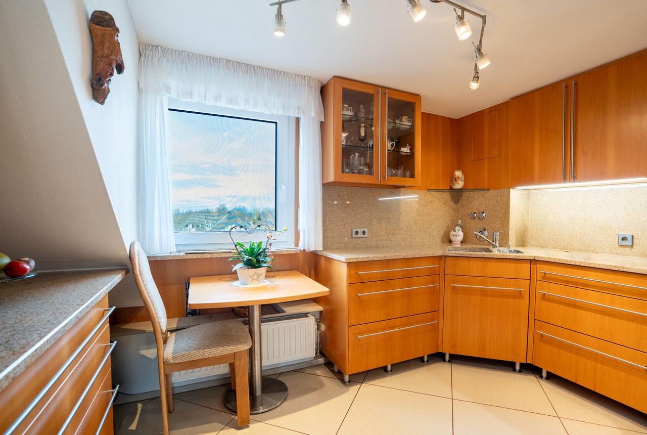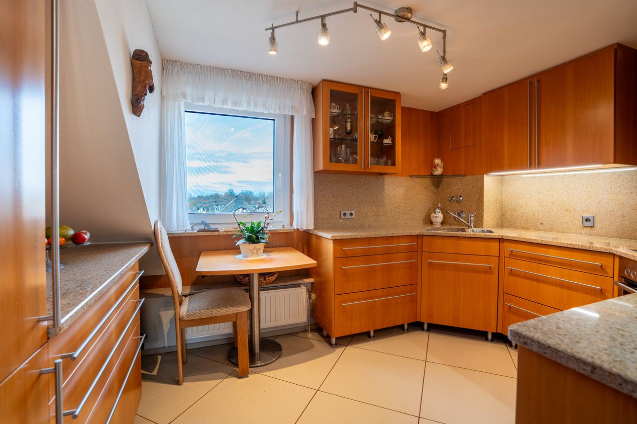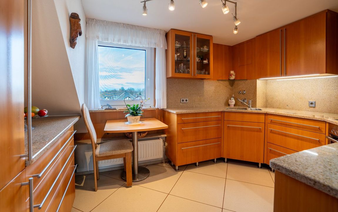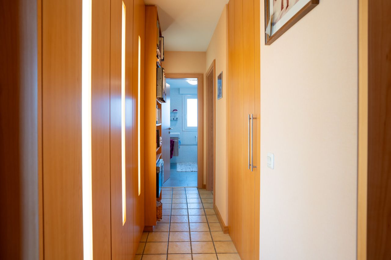 Die ansprechend geschnittene 2-Zimmer-Wohnung präsentiert sich hell und freundlich und überzeugt mit einem großzügigen Sonnenbalkon. Im Flurbereich bieten praktische, helle Echtholzeinbauten aus Buche inkl. integrierter Lichtquellen sowie ein begehbarer Kleiderschrank komfortablen Stauraum. Das Duschbad mit Tageslichtfenster verfügt über eine Regendusche, eine integrierte Sitzbank und ist zusätzlich nahezu barrierefrei. Zusätzlich steht neben dem eigenen Kellerraum weiterer Stauraum auf dem Dachboden zur Verfügung, der über eine Einschubtreppe erreichbar ist.
