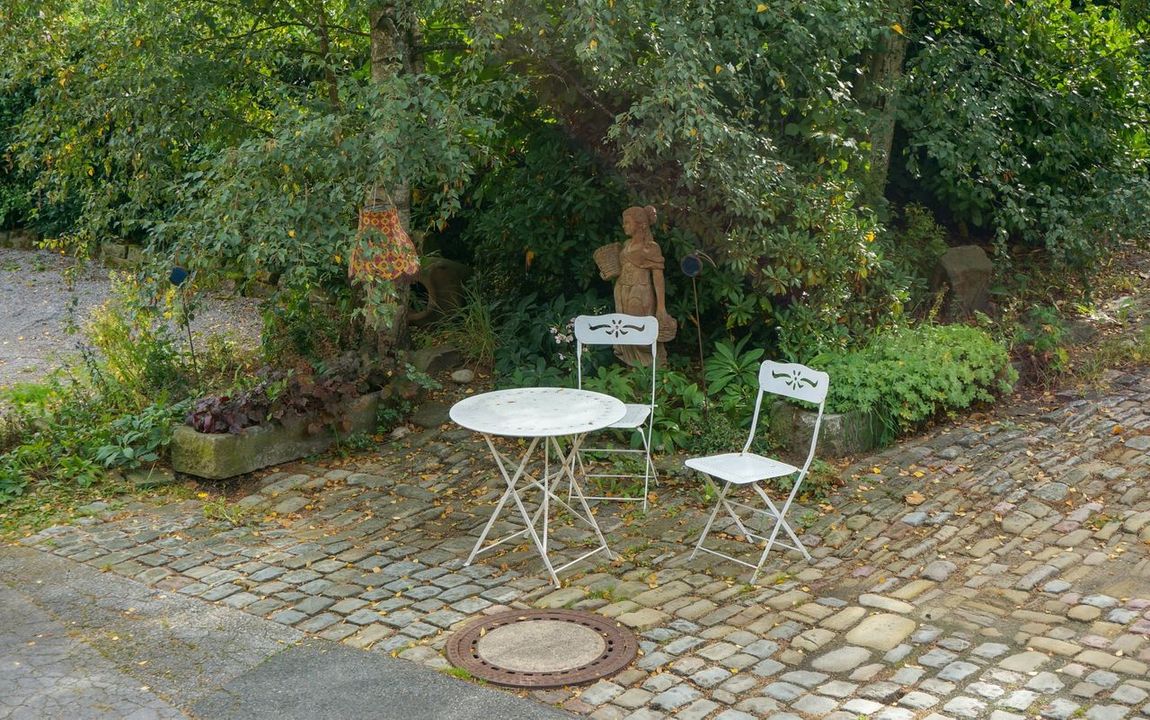 Die charmante Immobilie mit einem kleinen Büroraum befindet sich im grünen Stadtteil Hiddinghausen.