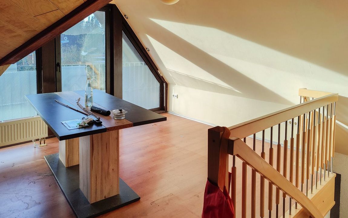 Auch die beiden Wohnungen im Dachgeschoss und im Spitzboden verfügen jeweils über einen Balkon. Die Wohnung im Spitzboden wurde seit 2001 immer weiter ausgebaut.