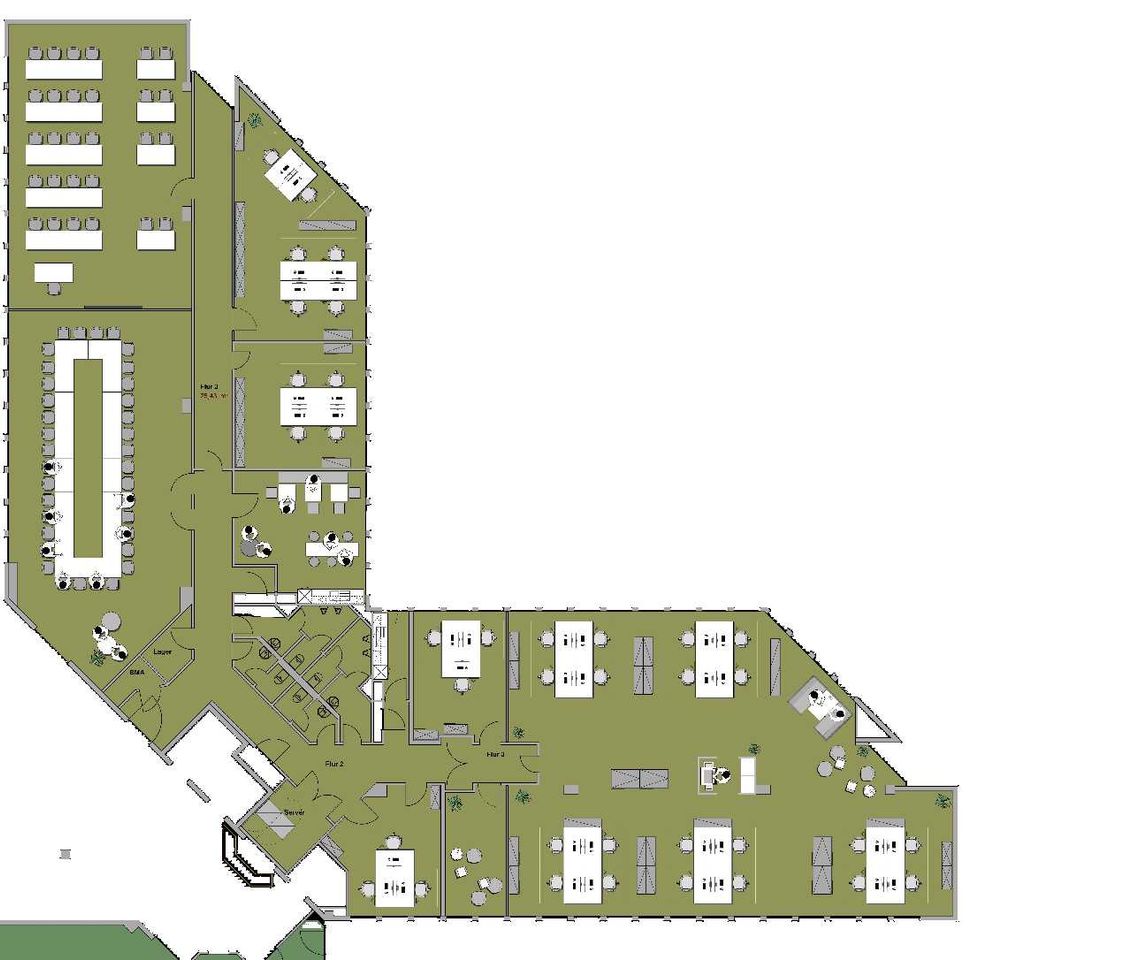 Die Flächen können nach Bedarf unterteilt werden, sodass neben Einzelbüros auch größere Konferenzräume, Lounges oder Showrooms geschaffen werden können. Grundsätzlich können die Flächen auch als Praxis, Studio oder Austellungsflächen genutzt werden. Alle Flächen sind barrierefrei erreichbar und können allen technischen Anforderungen entsprechend ausgestattet werden.