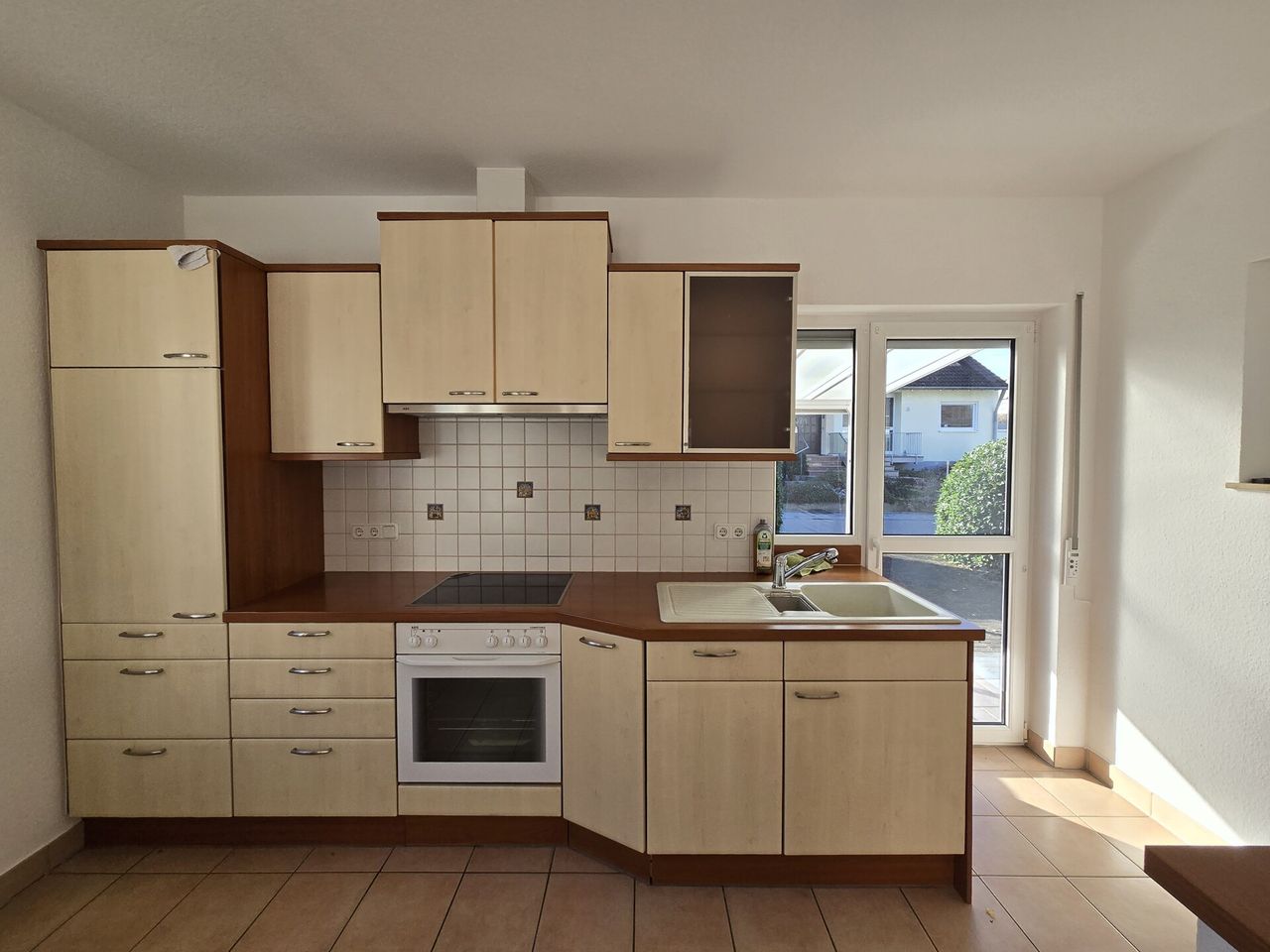 *einen offenen Wohn- und Essbereich mit angrenzender Küche.