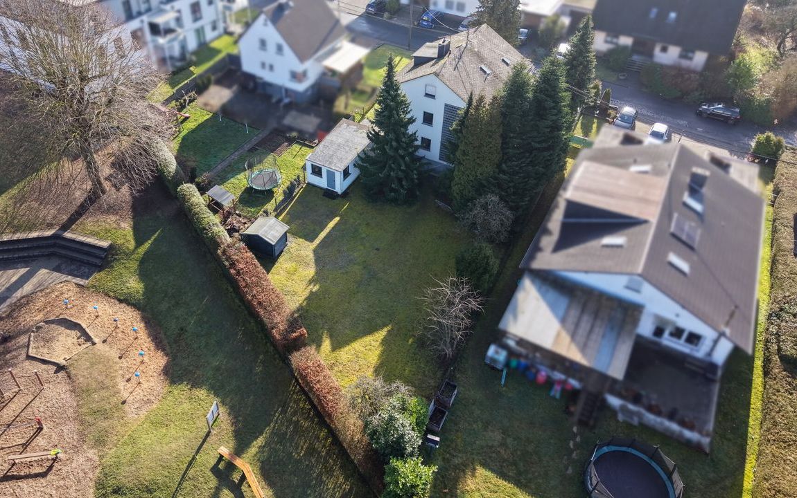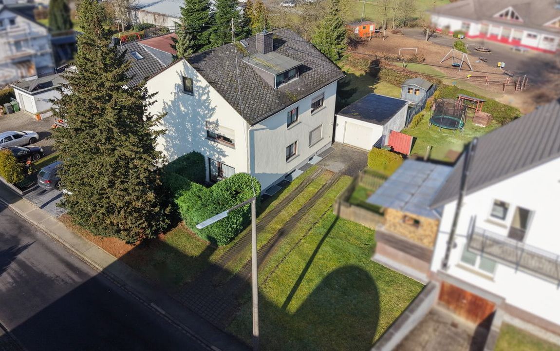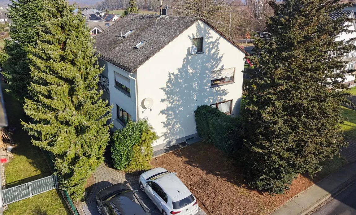 Das charmante Zweifamilienhaus in Wallmerod, eine Gemeinde im Westerwald in Rheinland-Pfalz. Wallmerod ist günstig gelegen und ermöglicht eine bequeme Anbindung an die umliegenden Städte Montabaur und Limburg an der Lahn, die in kurzer Fahrzeit erreichbar sind. In wenigen Gehminuten finden Sie verschiedene Einkaufsmöglichkeiten, Schulen und medizinischen Einrichtungen, die den täglichen Bedarf mühelos abdecken. Für sportliche Aktivitäten und Erholung im Freien laden die zahlreichen Wander- und Radwege sowie die nahegelegenen Sportanlagen und Parks ein. Die ausgezeichnete Betreuung durch öffentliche Verkehrsmittel gewährleistet zudem eine reibungslose Mobilität innerhalb der Region. Entdecken Sie die ideale Balance zwischen einem harmonischen Lebensumfeld und einer praktischen Anbindung an das Umland.