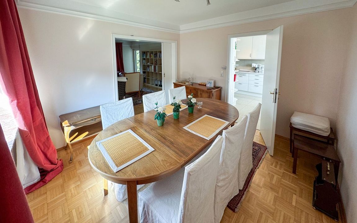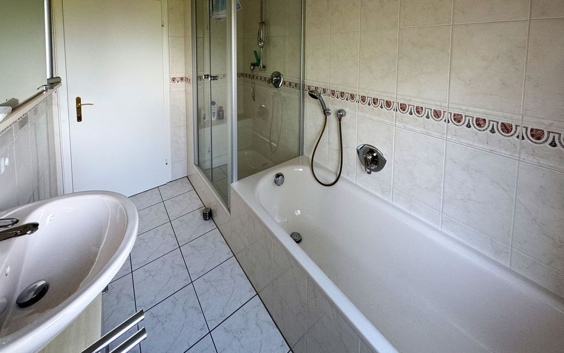 Mit einer großzügigen Wohnfläche von ca. 190 m² erstrecken sich die beiden Wohneinheiten über zwei Etagen. Eine Einheit ist derzeit vermietet, während die andere leerstehend auf Ihre individuellen Gestaltungsideen wartet. Das Dachgeschoss wurde in Eigenregie ausgebaut und bietet zusätzlichen Raum für kreative Nutzungsmöglichkeiten. Das Haus überzeugt durch einen sehr guten Zustand und eine hochwertige Ausstattung. Moderner Echtholzparkett und edle Fliesenböden sorgen für ein stilvolles Ambiente, während das Gäste-WC und der zusätzliche Stauraum im voll unterkellerten Bereich den Wohnkomfort ergänzen. Die großzügige Terrasse sowie der Balkon bieten Ausblicke in den großen, gepflegten Garten – ideal für entspannte Stunden im Freien. Das Grundstück umfasst ca. 874 m² und bietet durch seinen großen Garten ausreichend Platz zur Erholung oder für Freizeitaktivitäten. Die hochwertige Küche in der Wohneinheit im Obergeschoss ist nicht im Kaufpreis inbegriffen, kann jedoch nach Vereinbarung übernommen werden.