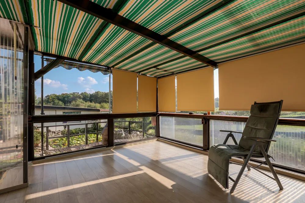 Der Zugang von der Hauptwohnung zum Garten ist sowohl vom Wohnzimmer als auch von einem weiteren Zimmer mittels einer Außentreppe sichergestellt.