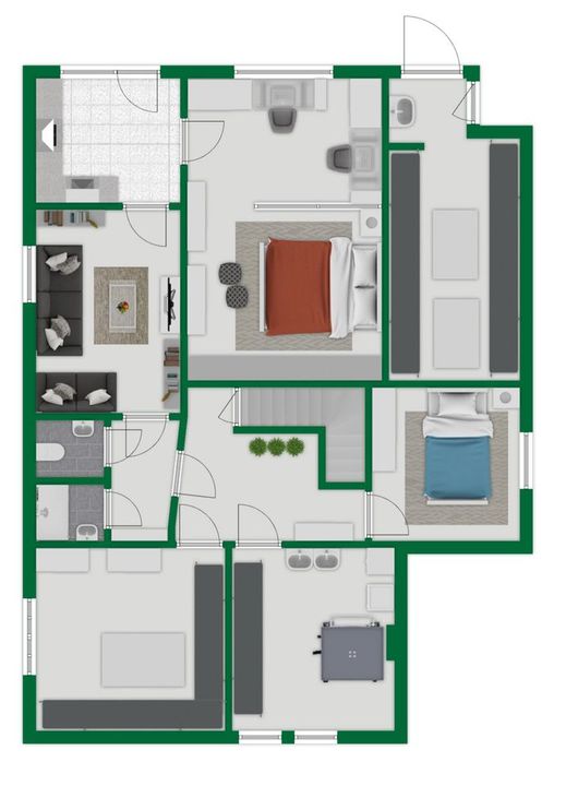 Da das Gebäude leicht im Hang errichtet wurde, gibt es im eigentlichen Kellergeschoss zudem weitere Fläche, welche in wohnraumähnlicher Qualität ausgebaut ist.