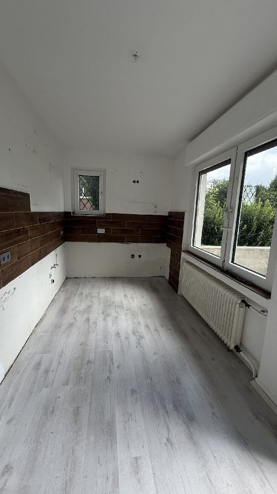 3/4 Zimmer, Schlaf- und Kindezimmer, Wohn-/Esszimmer, Küche, Bad, Terrasse, renovierungsbedürftig.