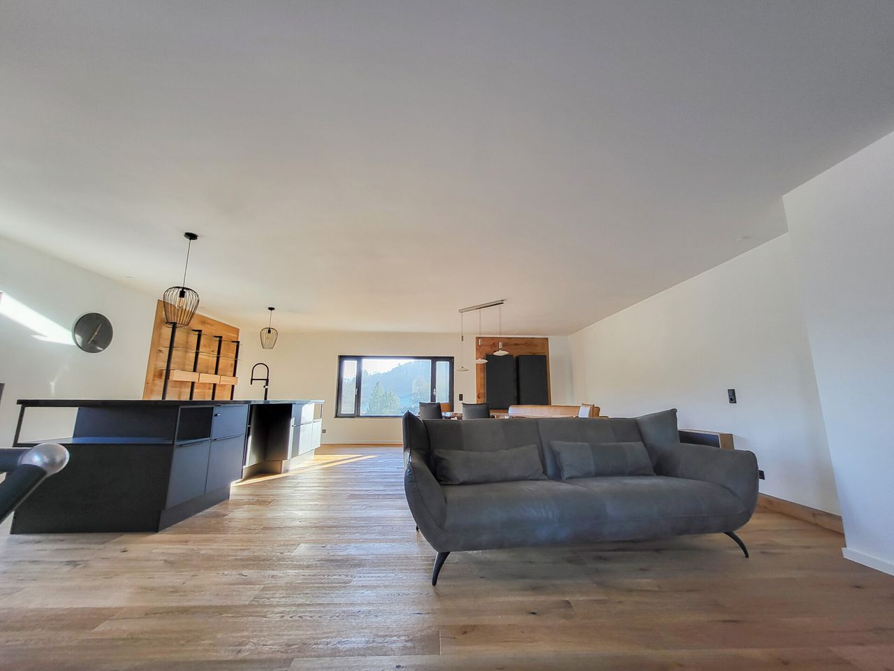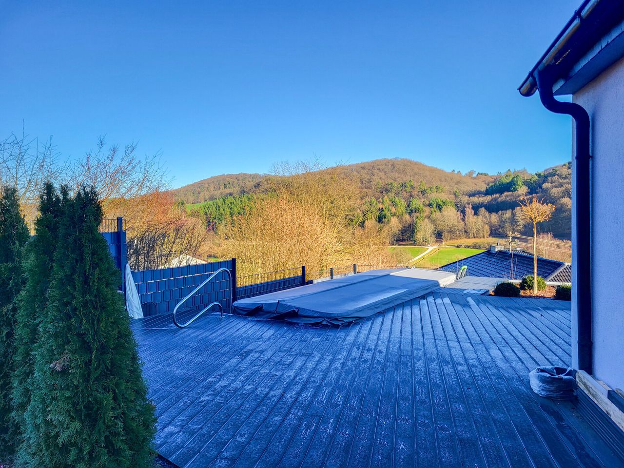 Im Essbereich bestehen ideale Voraussetzungen für einen Anbau. Darüber hinaus lässt sich im aktuellen Wohnbereich problemlos ein weiterer Schlafraum realisieren. Von der Terrasse aus genießen Sie einen faszinierenden Ausblick. Zudem befindet sich dort ein Swimspa mit Whirlpool und Gegenstromanlage, das für entspannte Stunden sorgt.