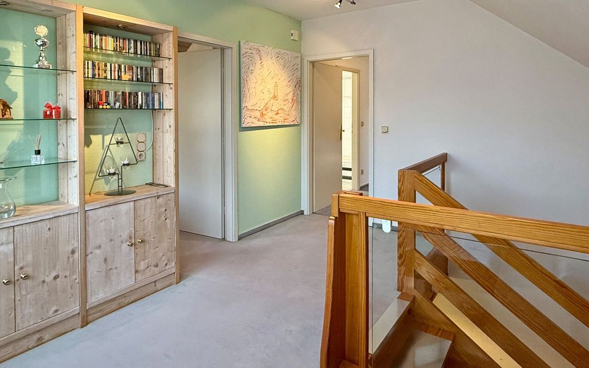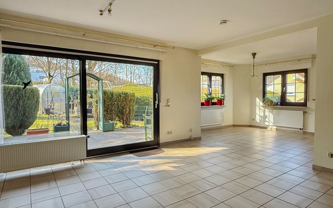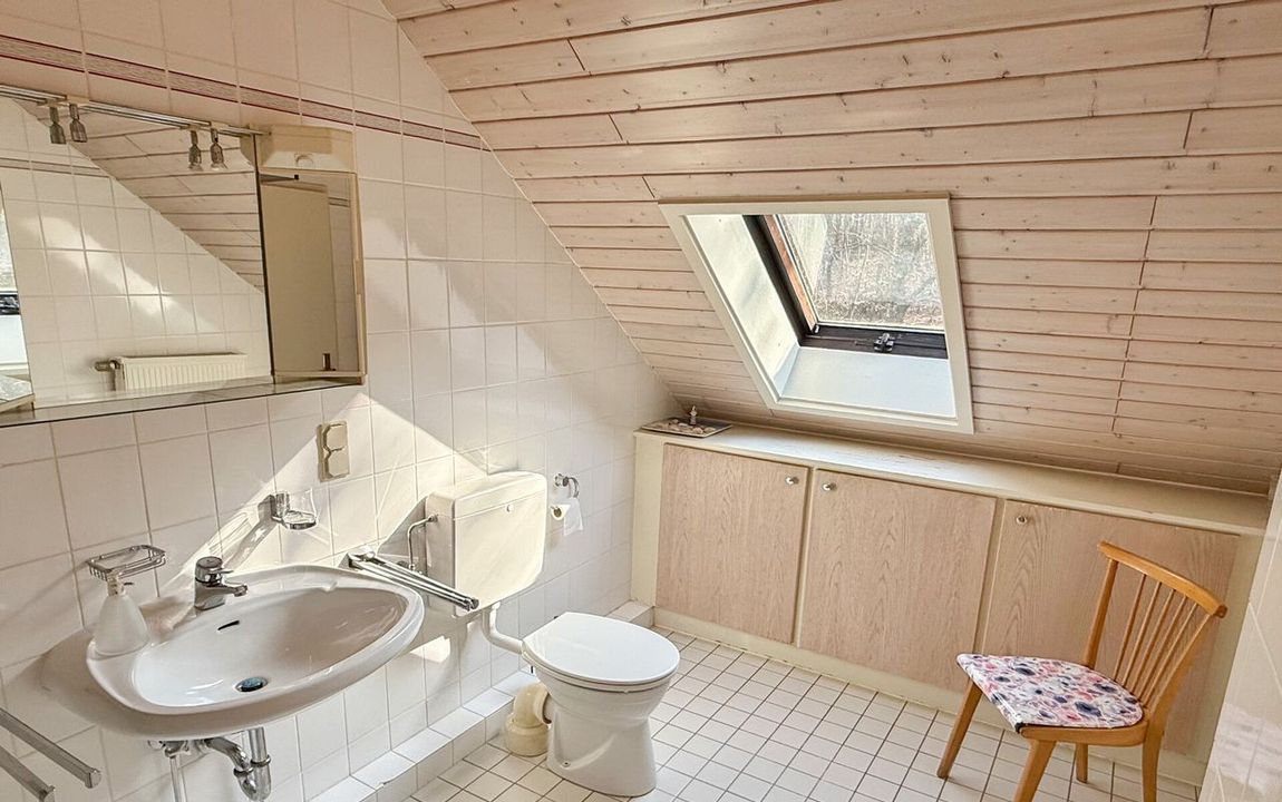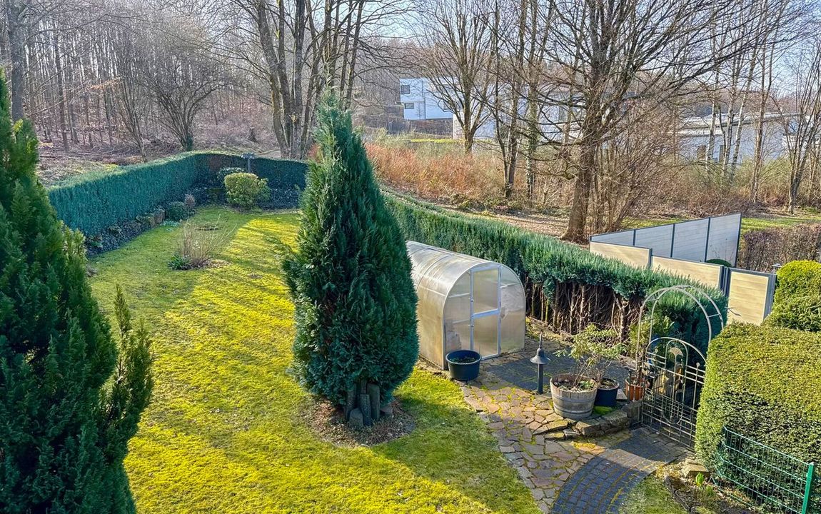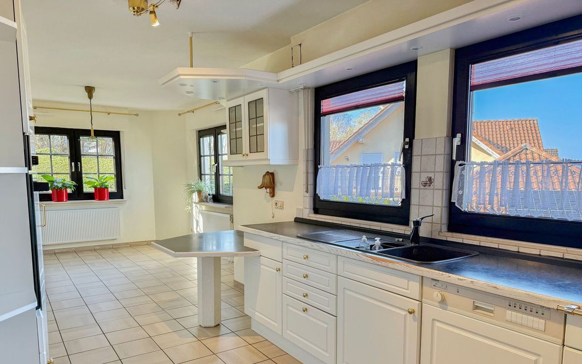 Dieses gepflegte Einfamilienhaus aus dem Jahr 1986 bietet mit rund 160 m² Wohnfläche auf einem ca. 868 m² großen Grundstück vielseitige Möglichkeiten. Es handelt sich um ein Fingerhut-Fertighaus mit durchdachter Aufteilung und der Option, das DG als Einliegerwohnung zu nutzen. Die Lage in einem verkehrsberuhigten Bereich ist besonders attraktiv für Familien. Direkt angrenzend an den Waldrand genießen Sie hier Ruhe und ein angenehmes Wohnumfeld. Das EG ist altersgerecht gestaltet und überzeugt durch eine schöne, offene Raumaufteilung. Küche und Essbereich gehen harmonisch ineinander über und öffnen sich zum Wohnzimmer mit Kachelofen. Eine große Fensterfront, zur Südterrasse ausgerichtet, sorgt für viel Tageslicht. Ergänzt wird diese Ebene durch ein Gäste-WC und ein Schlafzimmer mit Bad – ideal für komfortables Wohnen auch im Alter. Im DG stehen zwei Schlafzimmer, ein Bad sowie eine Wohnküche zur Verfügung. Dieser Bereich eignet sich hervorragend für größere Kinder, Gäste oder als separater Wohnraum. Vom Balkon aus haben Sie einen tollen Blick auf das Grundstück. Das Haus ist massiv, vollunterkellert und bietet reichlich Platz für Hobby oder Werkstatt. Ein Gewächshaus, eine Einzelgarage sowie 3–4 Stellplätze runden das Angebot ab.