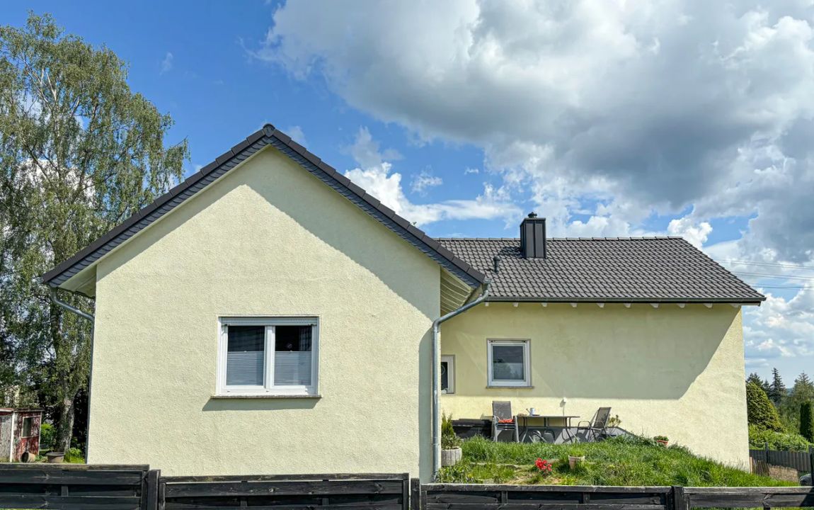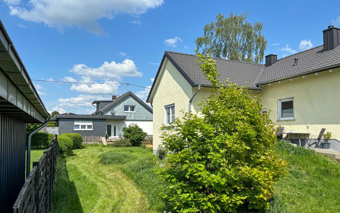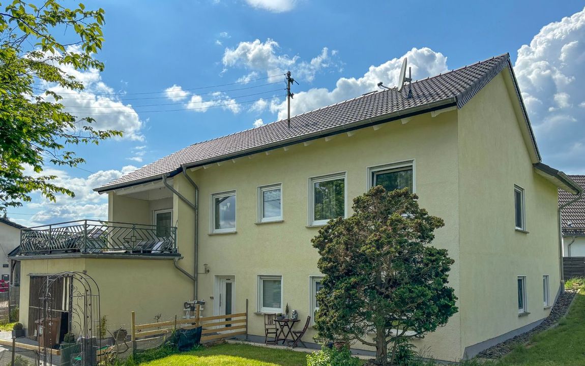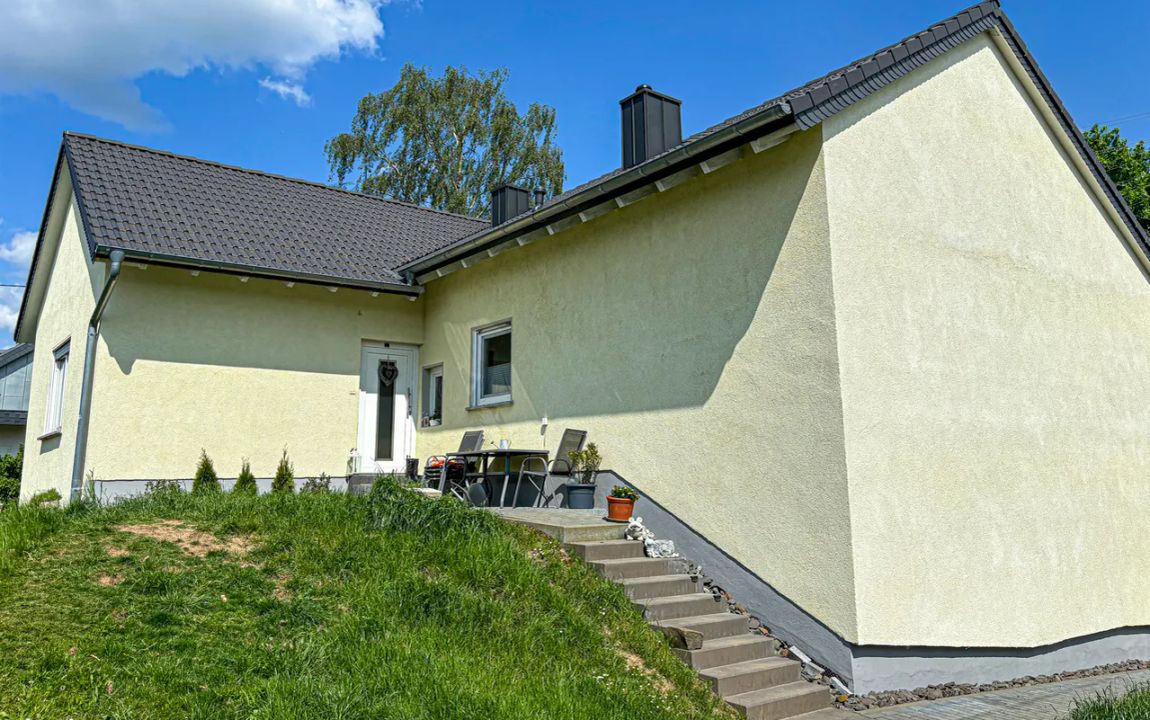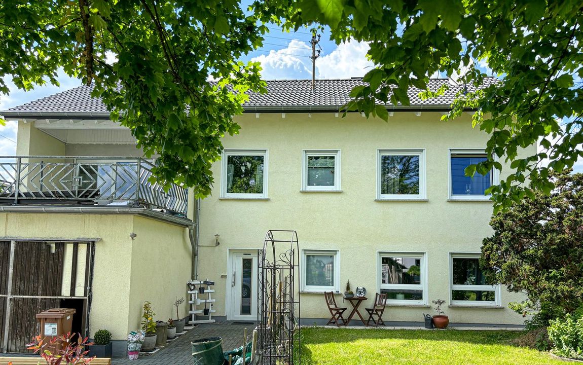Dieses gemütliche Einfamilienhaus befindet sich in einem sehr gepflegten und frisch renoviertem Zustand. Die Immobilie wurde im Jahr 1969 in Massivbauweise auf einem 1.557 m² großen Grundstück errichtet und bietet eine Gesamtwohnfläche von ca. 165 m². Im Souterrain mit zwei Zimmern, einer Küche und einem komplett erneuerten Bad mit bodentiefer Dusche wäre ggf. eine Einliegerwohnung möglich. Außerdem sind auf der Ebene noch ein Waschraum, ein Heizungsraum sowie ein Vorratsraum vorhanden. Über den Vorratsraum gelangen Sie in die ins Haus integrierte Garage. Im Erdgeschoss befindet sich der Hauptwohnbereich (4 Zimmer, Küche, Bad). Vom offen gestalteten Wohn- / Essbereich gelangen Sie auf die großzügige Sonnenterrasse mit einem herrlichen Blick in den angrenzenden Garten. Die Immobilie ist besonders für eine Familie mit Kindern oder für 2 Generationen geeignet, die unter einem Dach leben möchten!