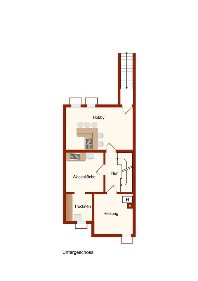 Das Haus war vermietet, Bäder, Fenster, Haustür, Oberböden und Malerarbeiten sollten Sie nach Ihrem Geschmack einbringen – wir schätzen die Kosten auf gut 60.000 EUR. Eine Garage gehört zum Angebot.