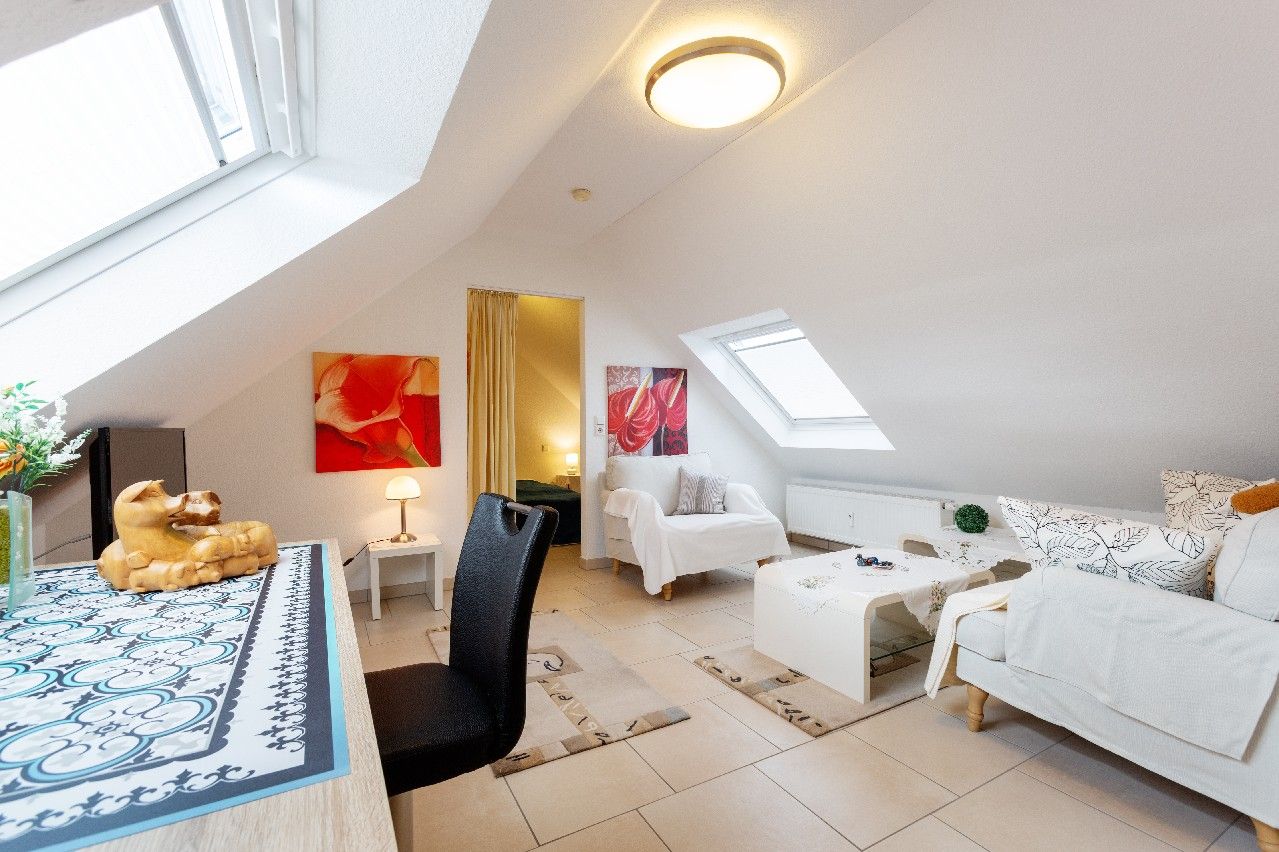 Die beiden hellen beheizbaren Räume, die sich hervorragend für Ihre Hobbys bzw. Unterbringung Ihrer Gäste eignen, werden Sie auch begeistern. Ein großes WC mit Handwaschbecken und Fenster ist hier ebenfalls vorhanden. Die Böden bestehen auch hier aus großformatigen hellen Fliesen. Dieser Bereich stellt keine offizielle Wohnfläche im klassischen Sinne dar. Dennoch ist der Ausbau sehr gelungen und schafft eine wohnliche Atmosphäre, die an die Wohnung im Erdgeschoss heranreicht.