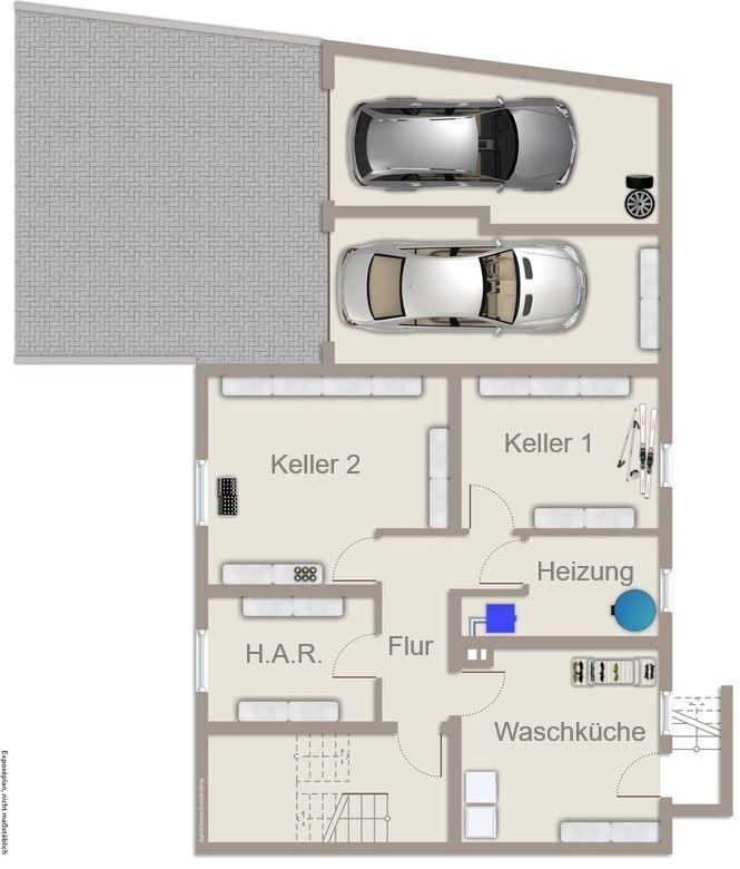 Hier werden Sie von dem sehr gepflegten Zustand ebenfalls begeistert sein. Alle Böden wurden gefliest und die Innenwände verputzt, so dass der Keller einen wohnlichen Charakter hat. Der Zugang vom Waschraum auf die aufwendig überdachte Terrasse und in den schön angelegten Garten mit hochwertiger Randbepflanzung ist optimal gelöst.