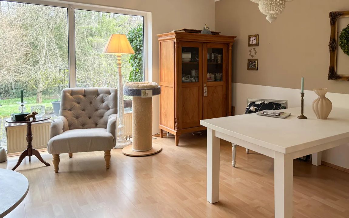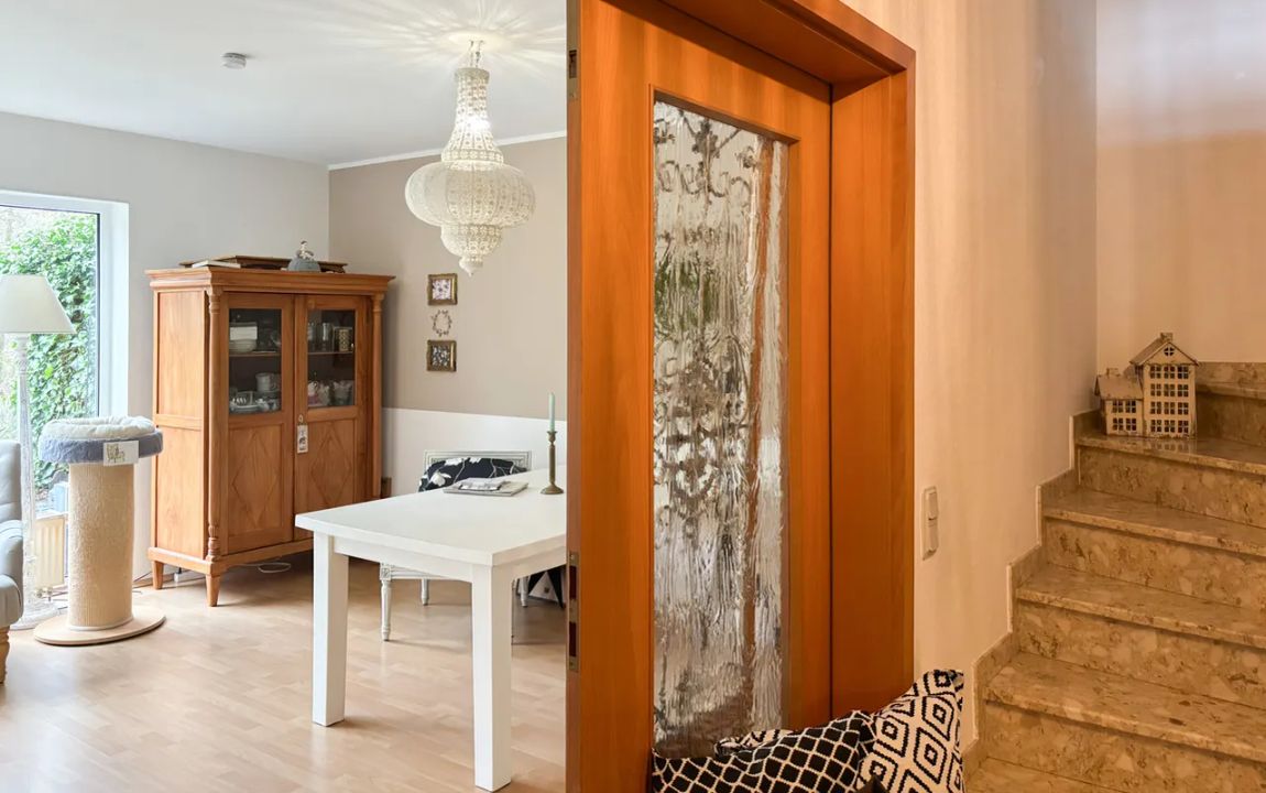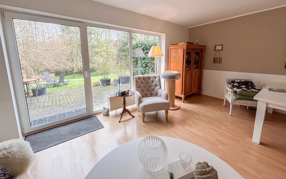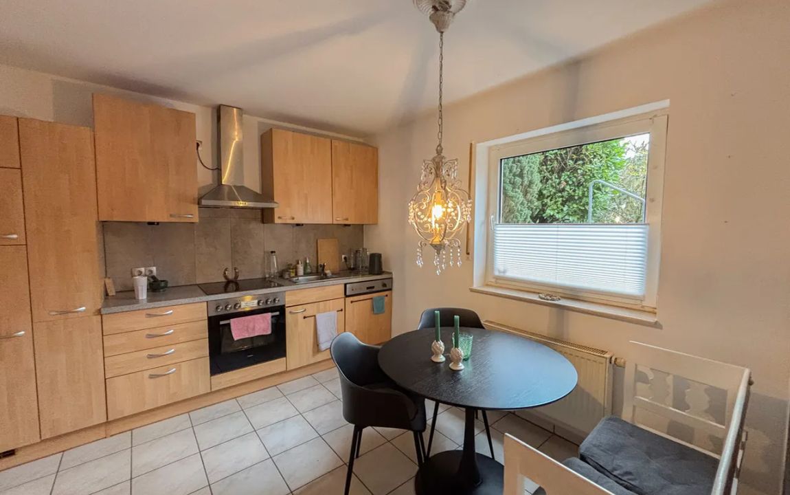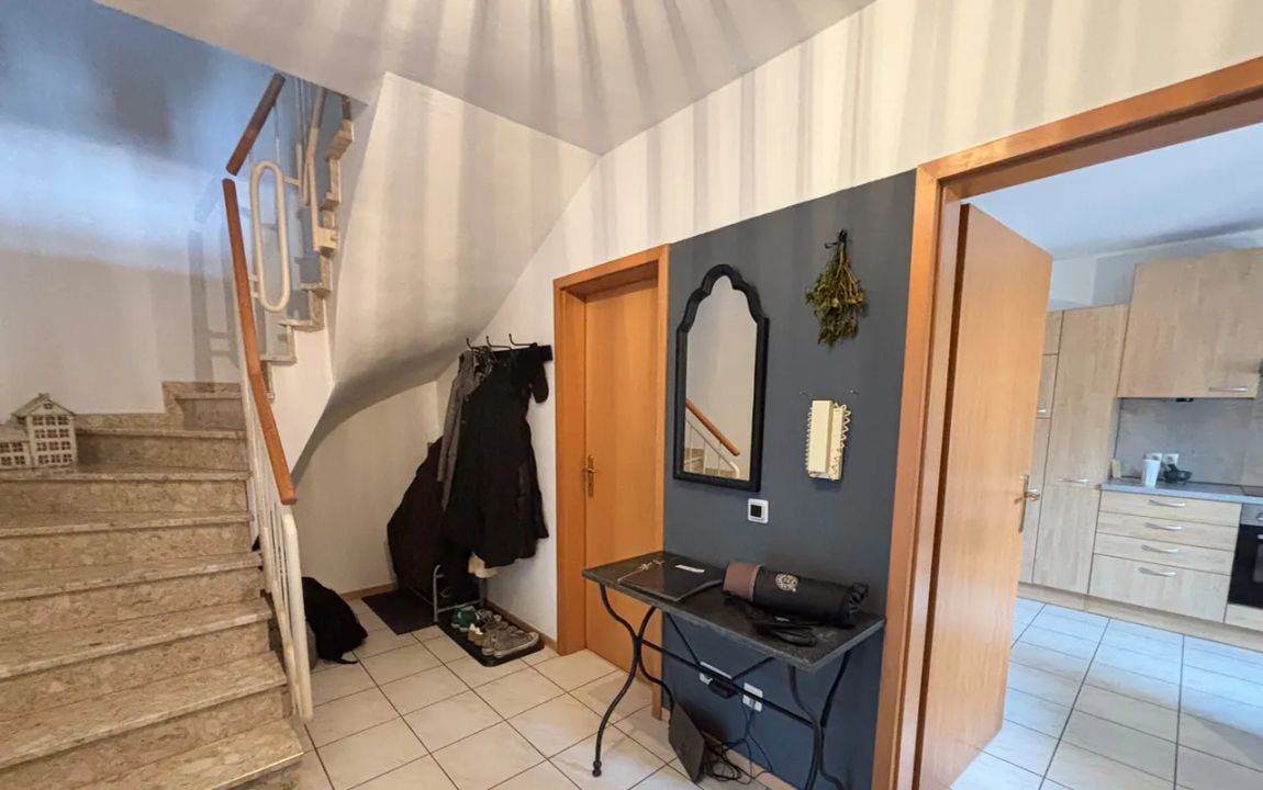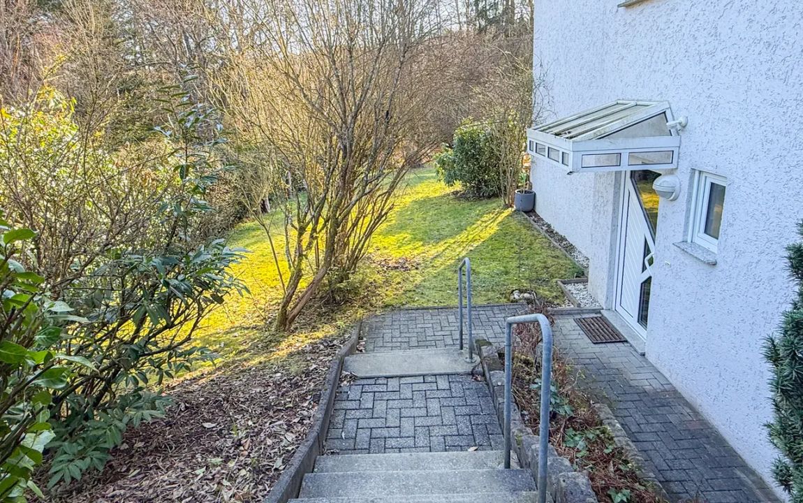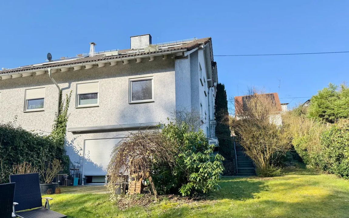 Diese gepflegte 4 Zimmer-Maisonette-Eigentumswohnung (Nr. 1) befindet sich im Untergeschoss eines im Jahr 1994 errichteten Mehrfamilienhauses mit insgesamt sechs Wohneinheiten. Durch die Hanglage bietet die Wohnung einen direkten Zugang vom Wohnzimmer auf die Terrasse und in den Gartenbereich. Die Wohnfläche von ca. 110 m² erstreckt sich über zwei Ebenen und sorgt für eine angenehme Aufteilung der Räume. Auf der unteren Etage befinden sich eine Küche mit Einbauküche, ein Gäste-WC, ein großzügiger Abstell-/HWR sowie ein helles, geräumiges Wohnzimmer mit Zugang zur Terrasse. Von hier aus gelangt man in den gemeinschaftlichen Gartenbereich, der im hinteren Teil an einen kleinen Bachlauf und eine bewaldete Fläche grenzt und somit eine besonders naturnahe Atmosphäre bietet. Über eine Treppe erreicht man die obere Ebene. Hier stehen zwei Schlafzimmer, ein Büro sowie ein modernisiertes Bad zur Verfügung. Ein eigener Stellplatz im oberen Grundstücksbereich gehört ebenfalls zur Wohnung. Die Einheit ist aktuell vermietet und erzielt eine monatliche Kaltmiete von 950 €. Es besteht ein Vertrag mit einer Hausverwaltung, die sich um die Abrechnungen der WEG kümmert. Zwei Räume werden zeitnah noch renoviert (Tapezieren + Streichen).