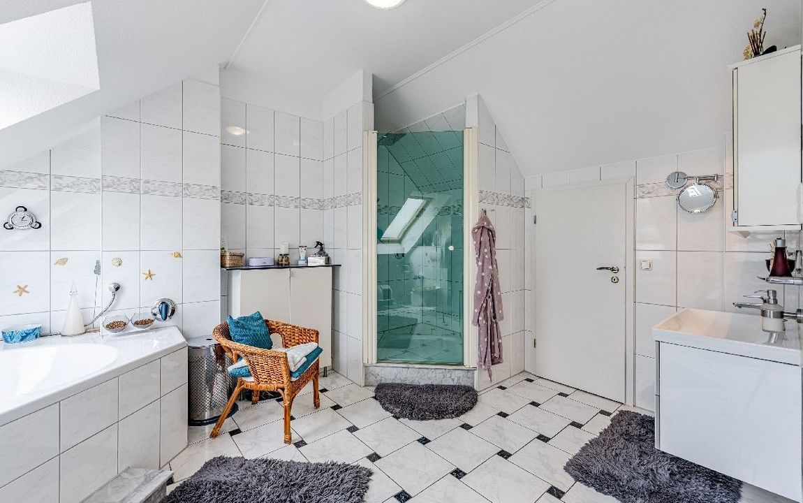 einheitlich geflieste Böden im Dachgeschoss