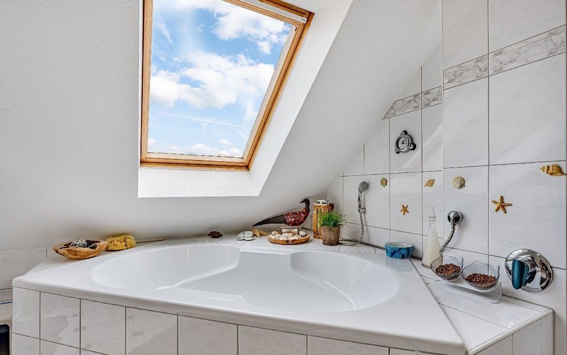 Tageslichtbad mit Eckwanne und Dusche