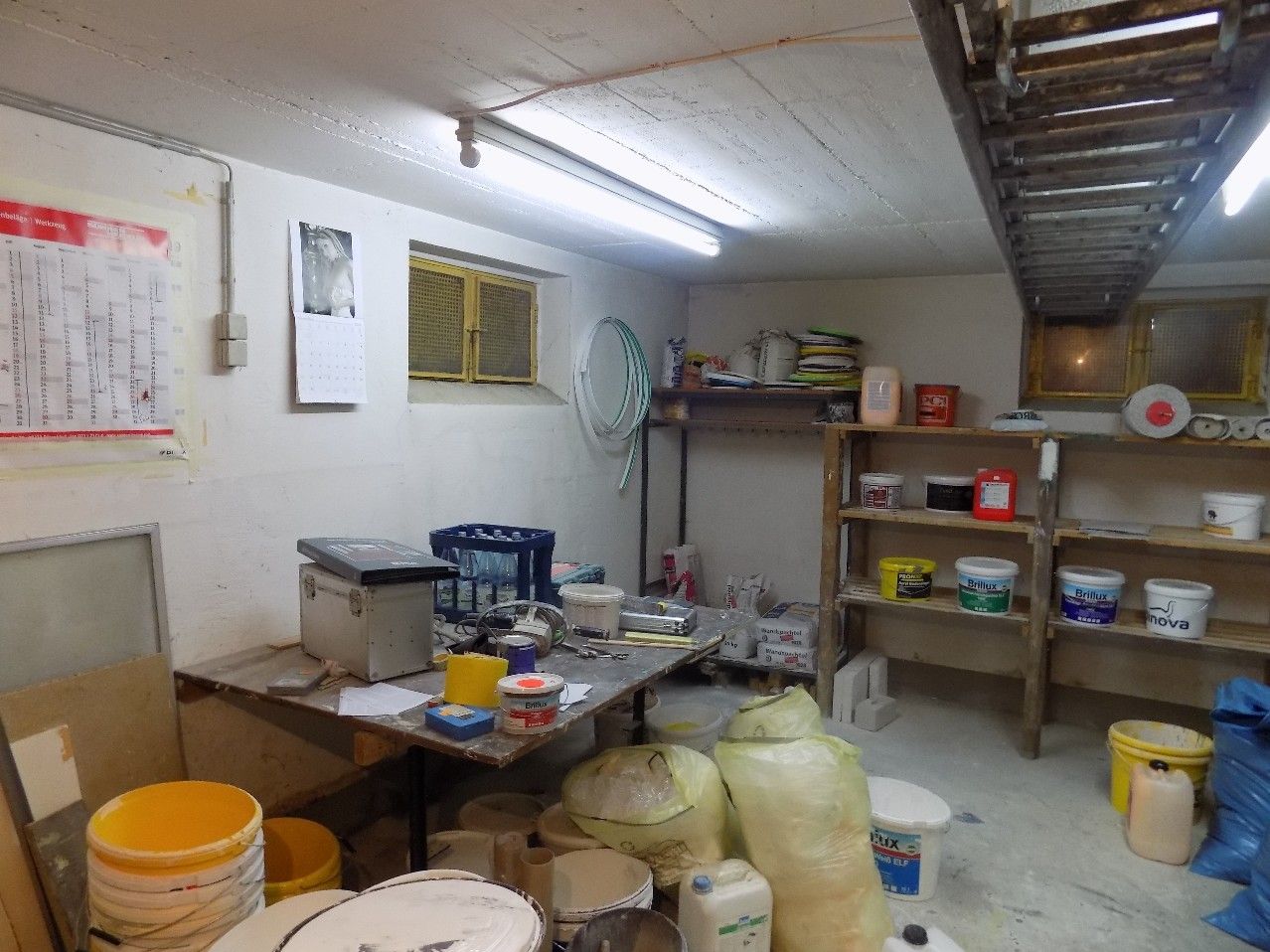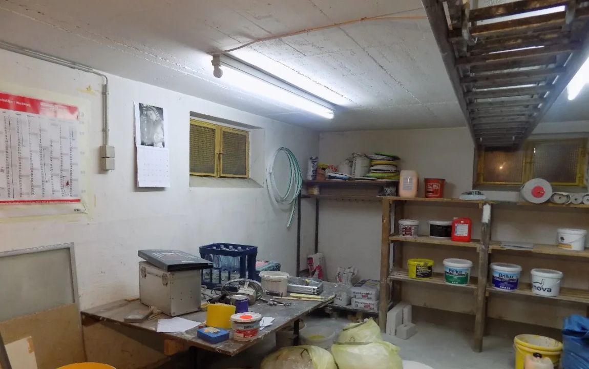 Bei dem hier angebotenen Teileigentum im Untergeschoss eines 7 Familienhauses, handelt es sich um eine Lagerfläche mit mehreren Räumen und einem kleinen Büro sowie zwei Stellplätze. Die ehemaligen Kellerräume wurden umgenutzt und sind seit 2000 an einen Malerbetrieb vermietet. Die aktuelle Kaltmiete beträgt 4.800 EUR p.a. zzgl. Betriebskosten (Müllgebühren, Wasser, Grundsteuer). Der Mietvertrag hat sich Ende Juli 2025 um weitere fünf Jahre verlängert.
