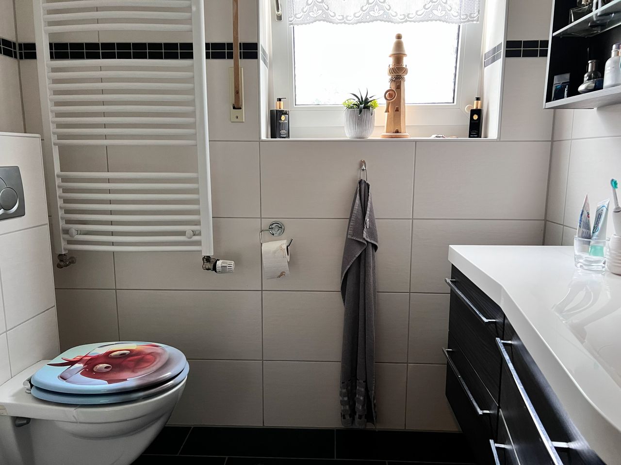 Im Erdgeschoss befinden sich neben der Diele, Küche, Bad und 3 Zimmern auch der große Wohn-/Essbereich mit Kamin und Zugang zu Terrasse und Garten. Das Dachgeschoss bietet ebenfalls viel Platz mit 3 Zimmern, Bad, Diele und Küche. Das Haus ist voll unterkellert. Von hier hat man den direkten Zugang zur übergroßen Garage. Im Kellergeschoss befindet sich neben den üblichen Kellerräumen auch ein ca. 40 m² großer Hobbyraum.