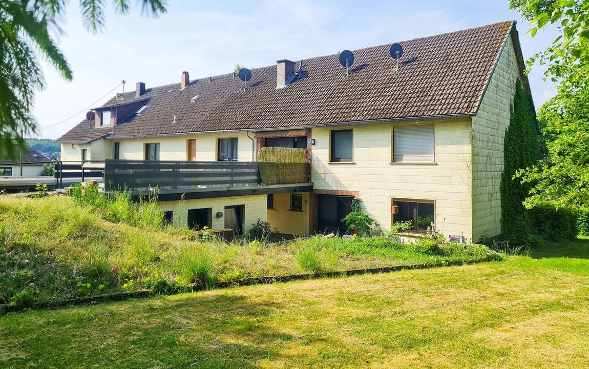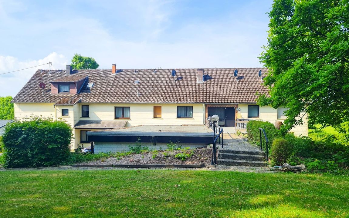 Zum Verkauf steht ein vielseitiges Mehrparteienhaus mit großzügigem Grundstück – eingebettet in die ruhige Ortrandlage nahe Puderbach. Das im Jahr 1923 errichtete Anwesen bietet mit ca. 518 m² Wohnfläche reichlich Platz zur Entfaltung. Die Fläche teilt sich auf in eine geräumige Haupteinheit – ehemals als Pension genutzt – sowie zwei separate Mietwohnungen.