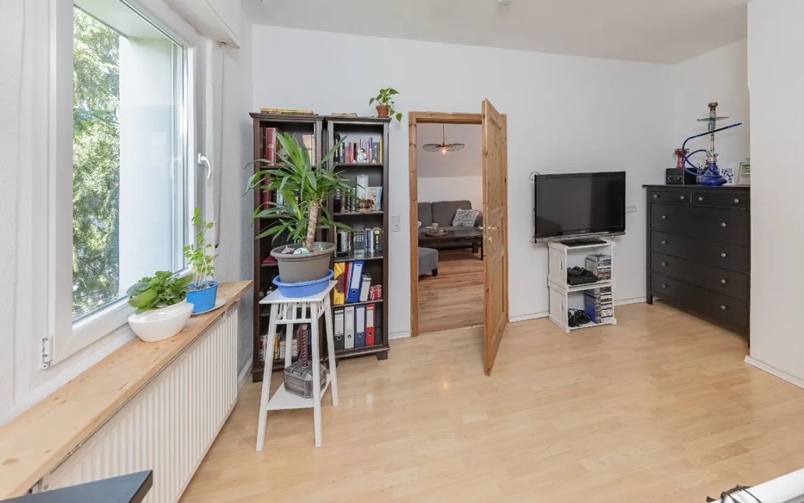 – leerstehende Erdgeschosswohnung mit Gartenzugang (3 Zimmer, Küche, Bad)