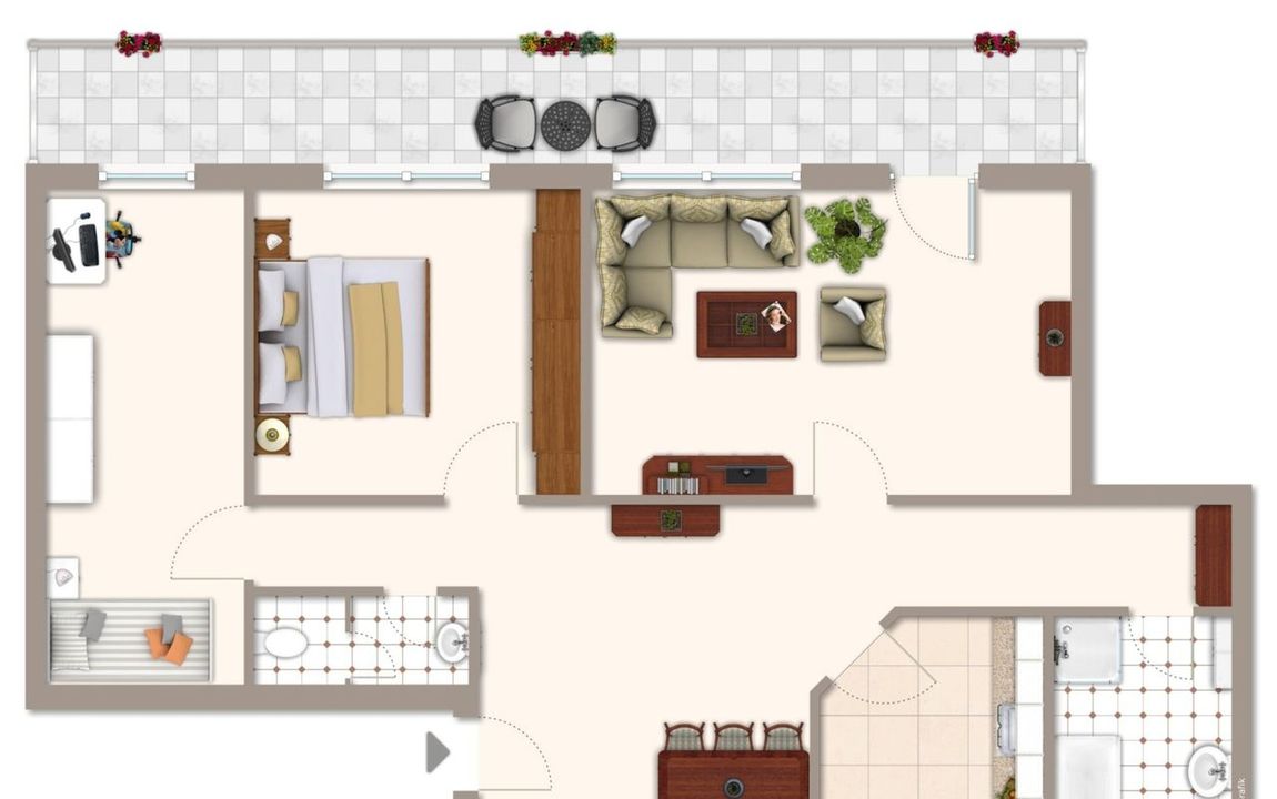 Die Wohnung verfügt über keinen Balkon, wohl aber über einen Laubengang den Sie für gemütliche Stunden an der Sonne nutzen können. Die Wohnung ist mit einem Aufzug bequem erreichbar und bietet zwei eigene PKW-Stellplätze sowie eine Garage, die zusätzlichen Stauraum oder Platz für Ihr Fahrzeug bietet.