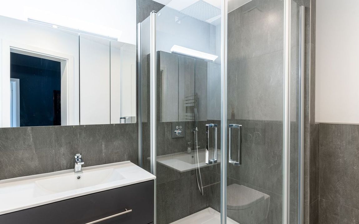 Die Wohnung ist mit hellem Laminatboden ausgestattet. Die Wände sind verputzt und teilweise farbig angestrichen. Die sanitären Anlagen sind mit grauen Boden- und Wandfliesen belegt und weißen Keramiken mit grauen Akzenten abgesetzt. Das Duschbad verfügt über ein Hänge-WC, einen Waschtisch und eine große Dusche. Die Balkone bieten Ihnen schöne Ausblicke auf den Grafenberger Wald und eine Sportanlage, hier können Sie perfekt vom Alltag abschalten. Eine Gaszentralheizung sorgt für Wärme und Warmwasser. Zur Wohnung gehört ein eigener Abstellraum. Die Treppenhausreinigung und Kabel-TV sind in den Nebenkosten enthalten.