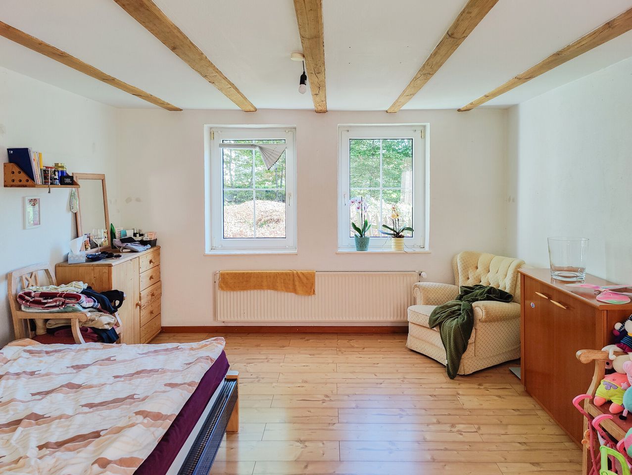 Das ehemalige Bauernhaus wurde ca. um 1900 errichtet und in den 1970er Jahren um einen Anbau erweitert. Es verfügt im Obergeschoss z.T. über eine Fachwerkkonstruktion mit sichtbarem Gefache. Die umfassenden Wände im Erdgeschoss sind gemauert und im Teilkeller befinden sich Bruchsteinwände.